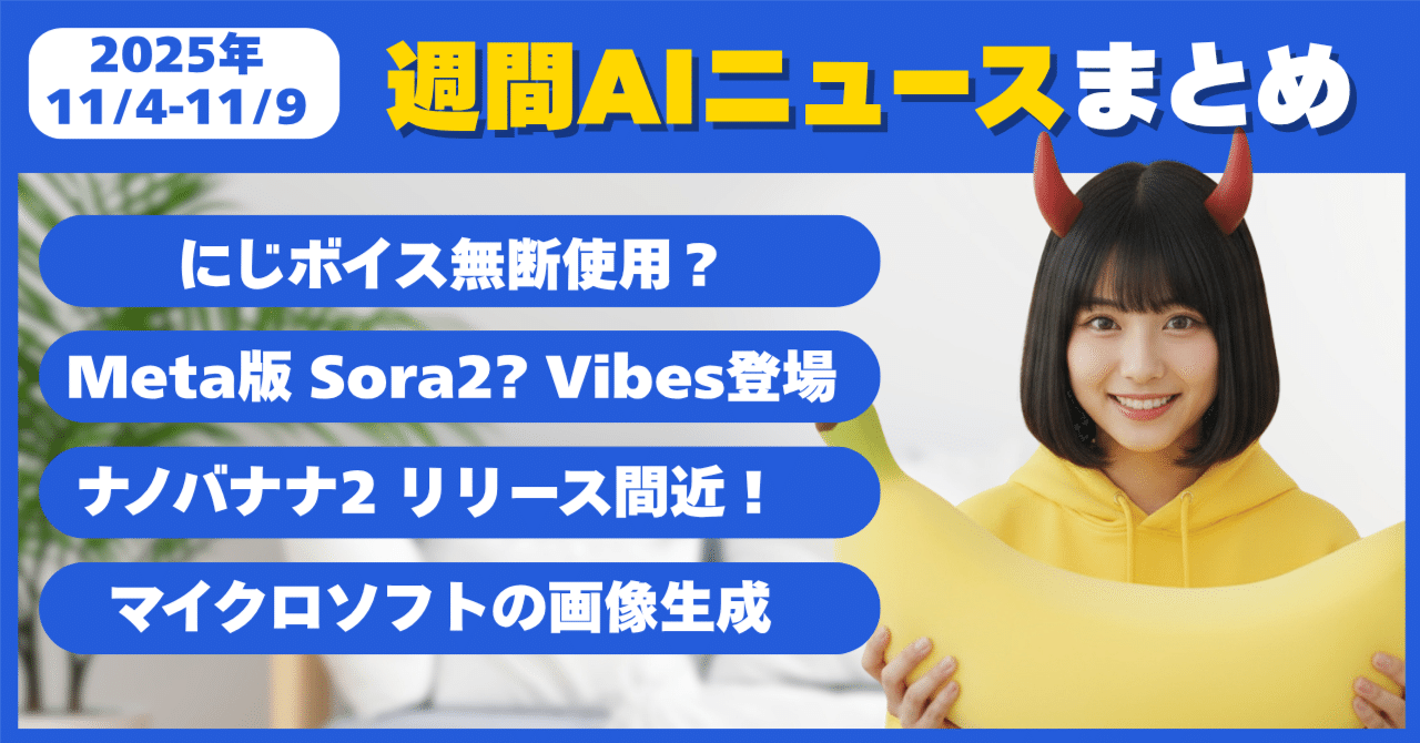 【週間AIニュースまとめ】にじボイス無断使用疑惑、Sora2 Android版、Meta版Sora、Nanobanana2…今週のAI業界を総まとめ!