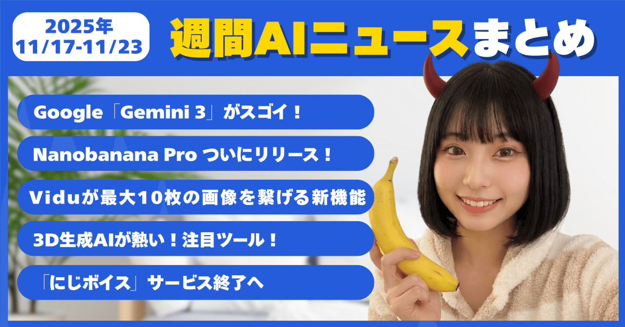 Gemini 3 & Nanobanana Pro登場!その他盛沢山の1週間!【今週のAIニュース】