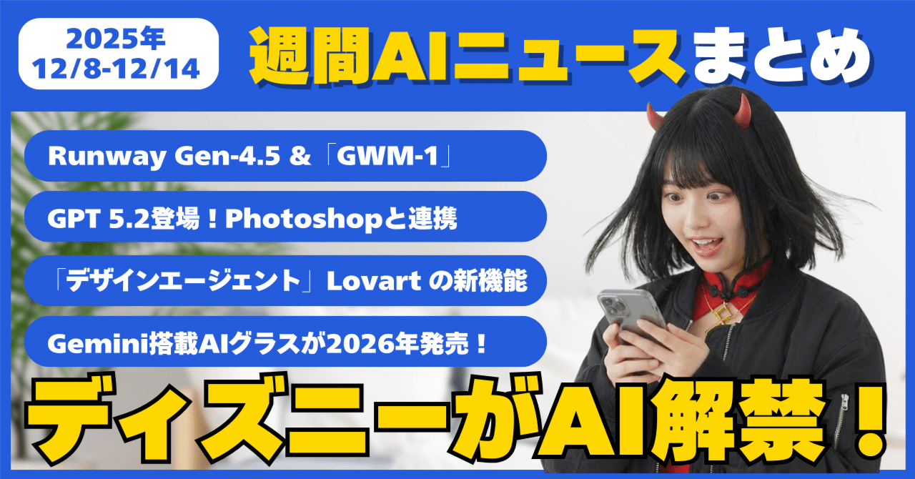 ディズニーがSora解禁!GPT-5.2発表から「PCデータ消失」の衝撃ニュースまで【週刊AIニュース】