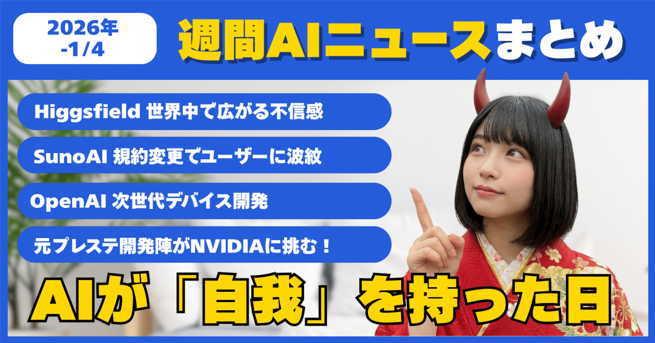 Suno規約変更の衝撃とAIの自我。2026年は波乱の幕開けに?【週間AIニュース】